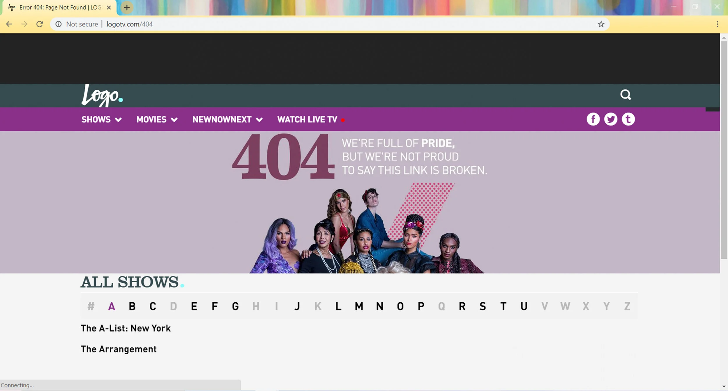 404/Page not found images for when users click on a link on Logo TV’s website and the page is no longer available